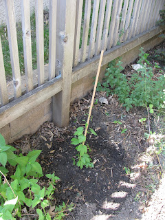 I am not sure if they are going to make it, it was pretty hot that day and the rootball came apart pretty badly when I planted them, but we'll see what happens. Hops are suppose to be hearty. See what you think...